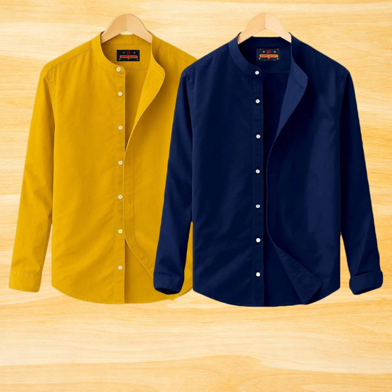 2 Pis Ban Collar Full Sleeve Shirt