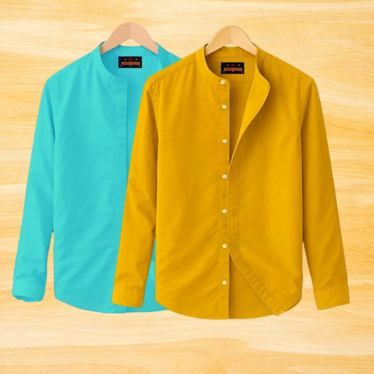 2 Pis Ban Collar Full Sleeve Shirt