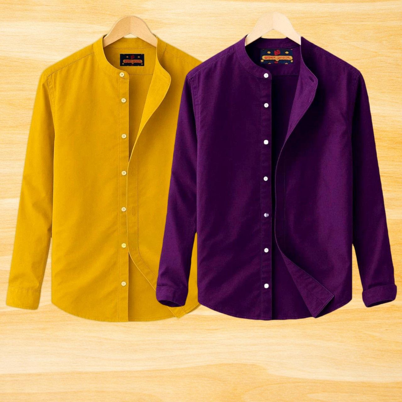 2 Pis Ban Collar Full Sleeve Shirt