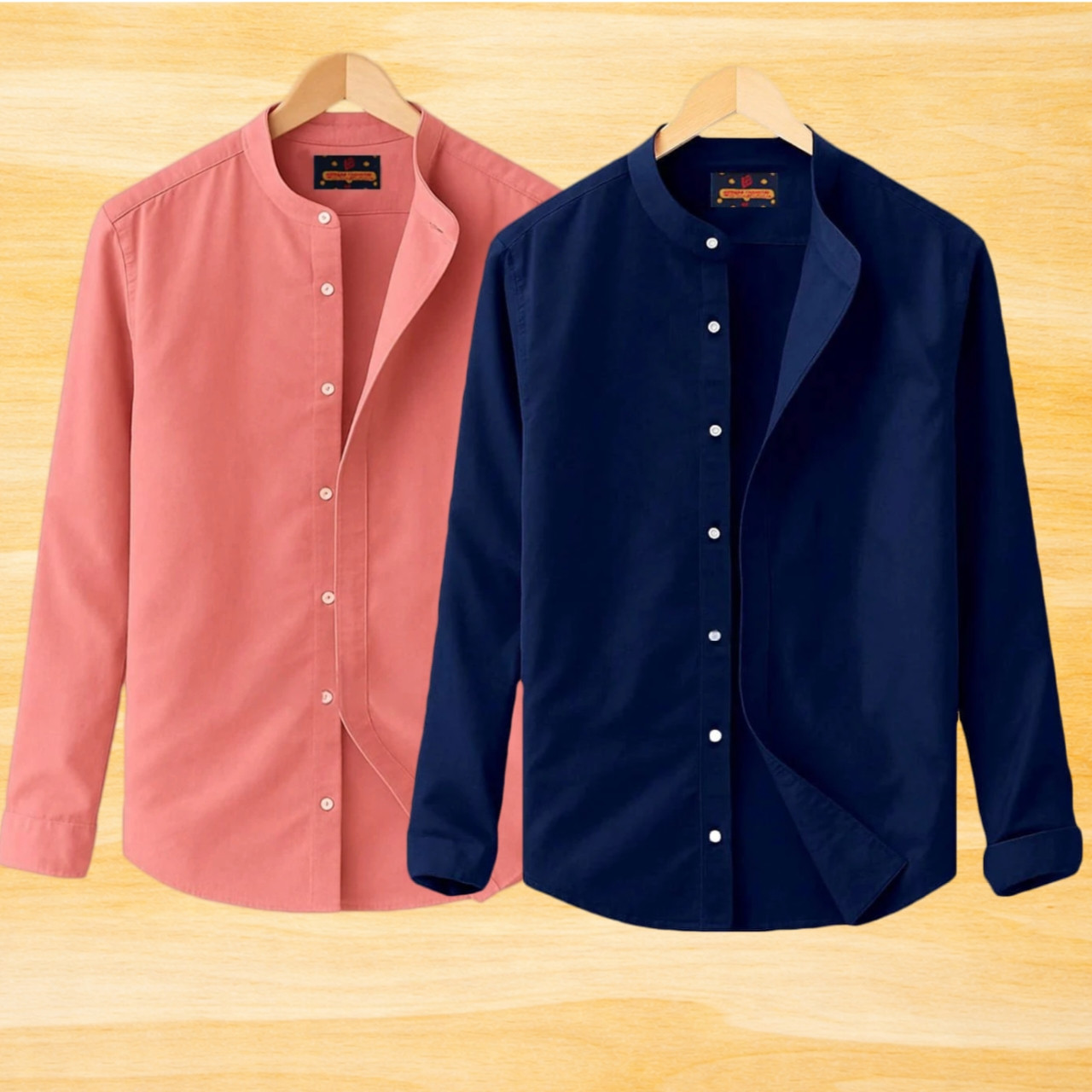 2 Pis Ban Collar Full Sleeve Shirt