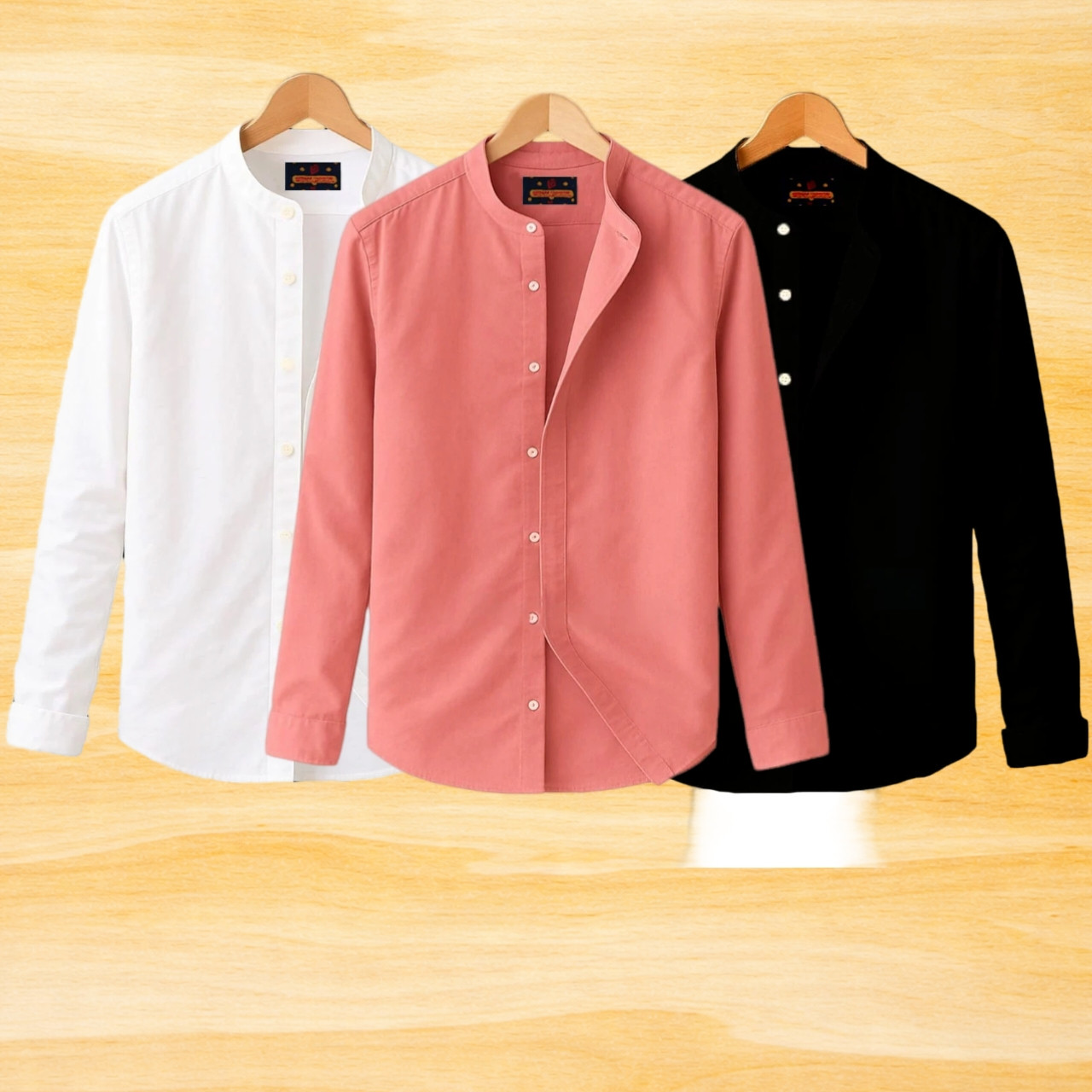 2 Pis Ban Collar Full Sleeve Shirt