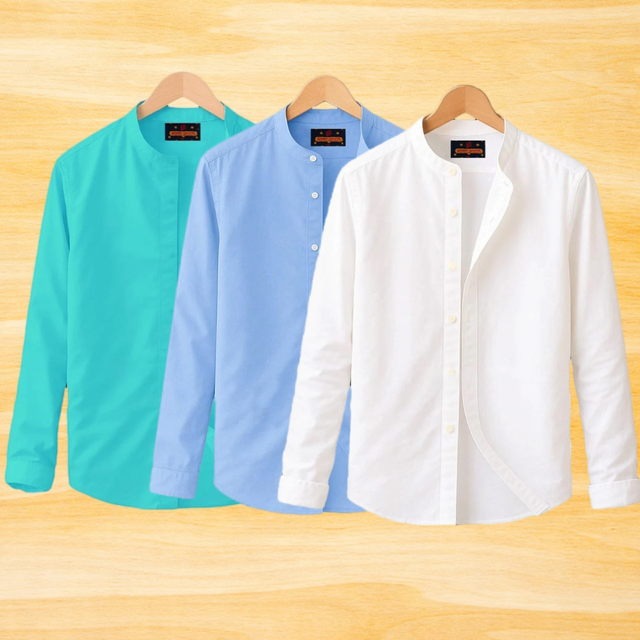 2 Pis Ban Collar Full Sleeve Shirt